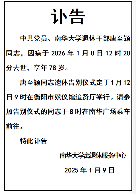 南华大学离退休服务中心 地址:湖南省衡阳市常胜西路28号