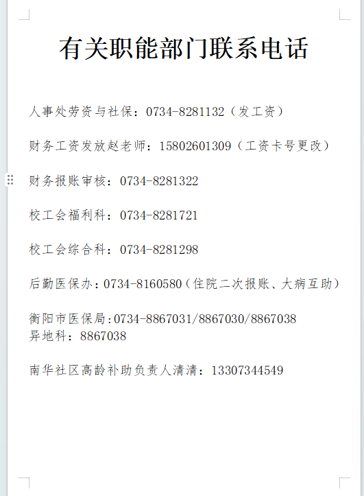 南华大学离退休服务中心 地址:湖南省衡阳市常胜西路28号